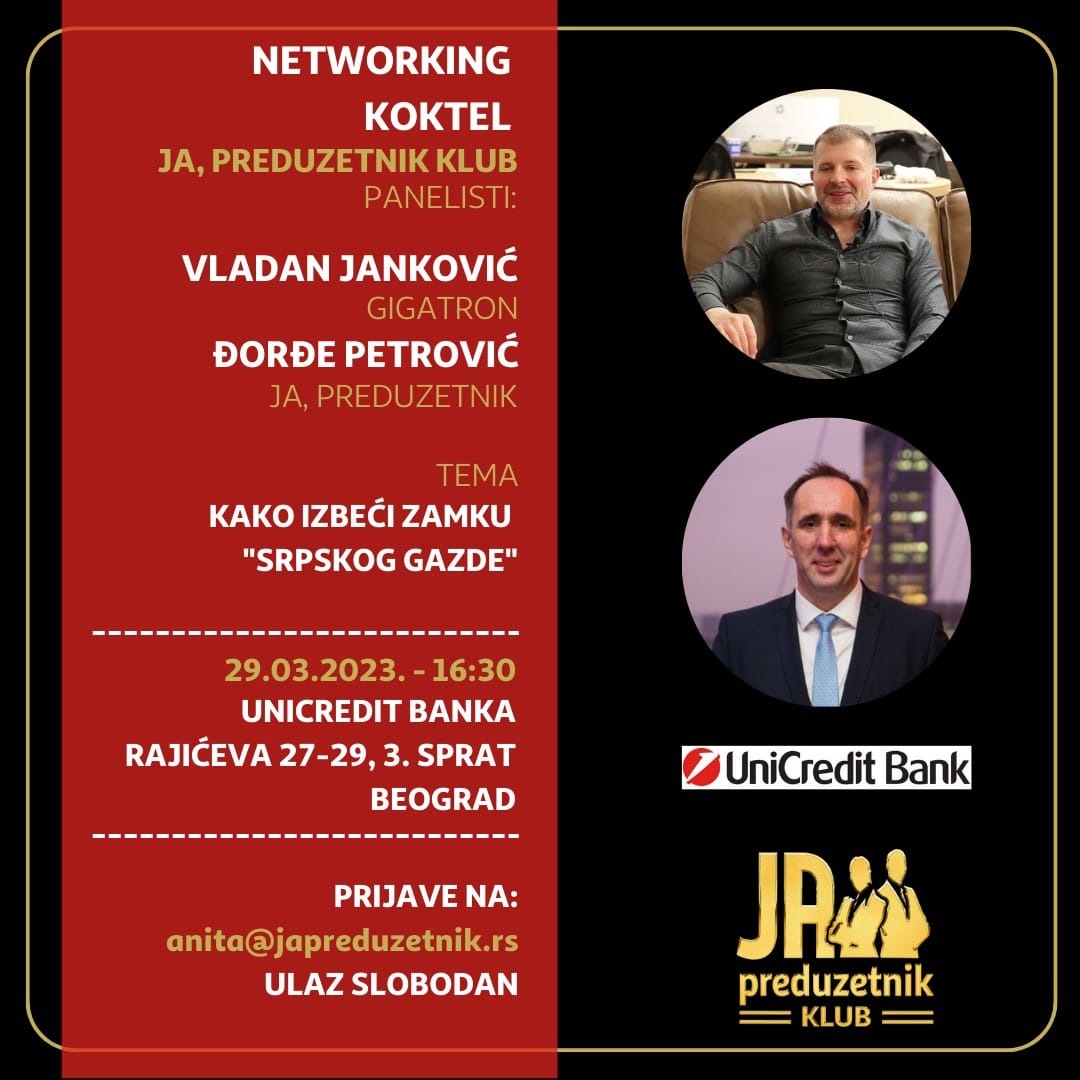 MARTOVSKI NETWORKING KOKTEL 29.03.2023 16:30 Rajićeva27-29, 3. sprat, Beograd Na ovom susretu saznajte kako je Vlada Janković izbegao zamku \”srpskog gazde\” i još mnoge odgovore